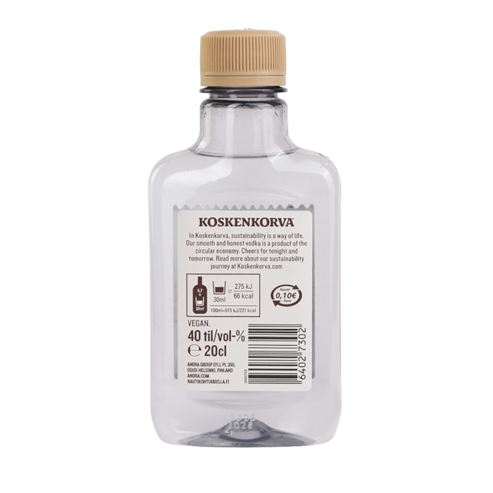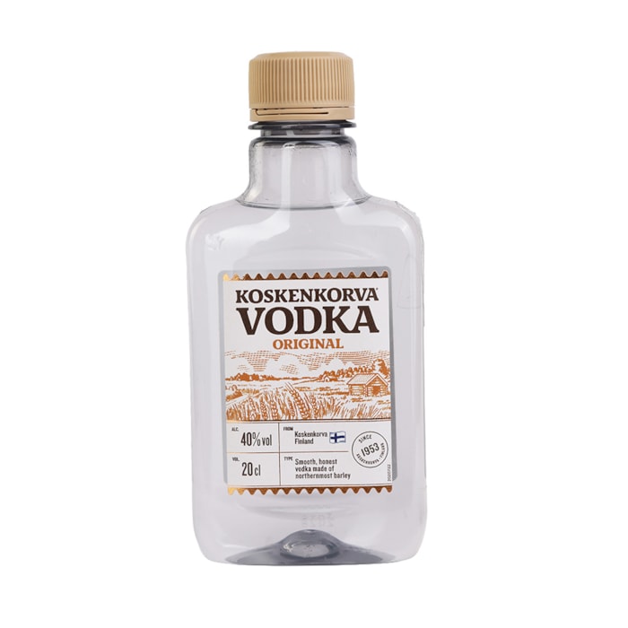 არაყი Koskenkorva 40% - 0.2ლ ბრენდი Koskenkorva წარმოშობა ფინეთი არომატი ნეიტრალური, მსუბუქი მარცვლეული გემო სუფთა, რბილი, ქერის ტექნოლოგია უწყვეტი 200-სვეტიანი დისტილაცია ალკ. შემცველობა 40.00% მოცულობა 0.20 L 15.5₾ მარაგშია დამატება