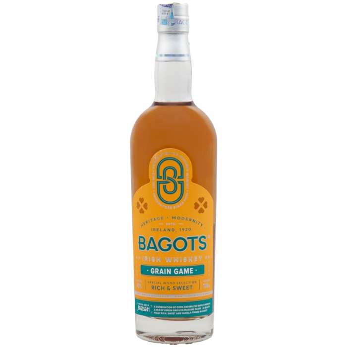 ვისკი Bagots Grain Game 40% - 0.7ლ ბრენდი Bagots წარმოშობა ირლანდია არომატი მსხალი, ქლიავი, ციტრუსი გემო რბილი, კაკაო, თხილი ტექნოლოგია სამმაგი დისტილაცია, მადეირა ალკ. შემცველობა 40.00% მოცულობა 0.70 L 81.9₾ მარაგშია დამატება