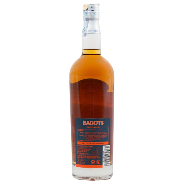 ვისკი Bagots Madeira Cask 55% - 0.7ლ ბრენდი Bagots წარმოშობა ირლანდია არომატი ყავა, გარგარი, კარამელი გემო სავსე, ვანილი, სანელებლები ტექნოლოგია ერთი კასრი, მადეირა ალკ. შემცველობა 55.00% მოცულობა 0.70 L 532₾ მარაგშია დამატება