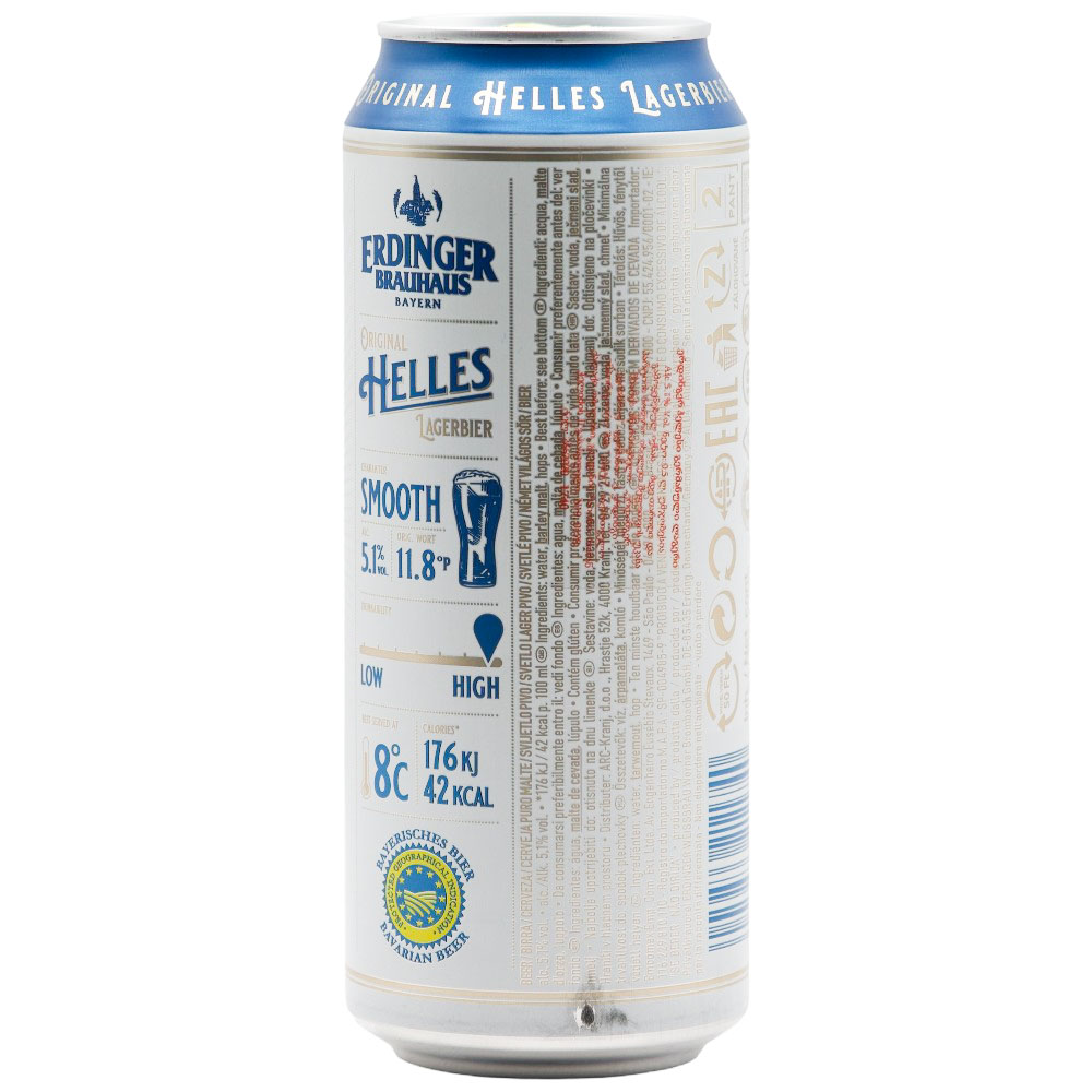 ლუდი Erdinger Brauhaus Helles 5.1% (ქილა) - 0.5ლ