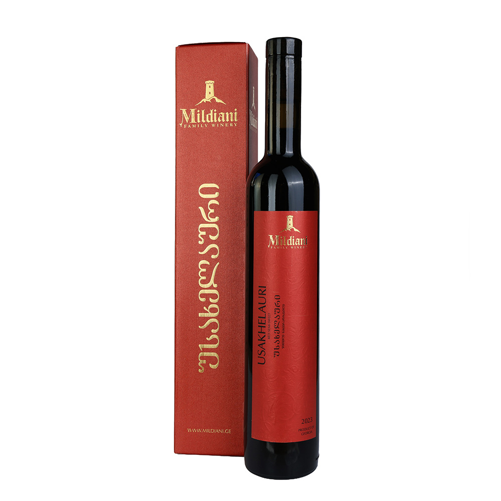 ღვინო უსახელაური მილდიანი 12% - 0.5ლ ბრენდი მილდიანი წარმოშობა საქართველო არომატი მწიფე წითელი ხილი, მოცვი, ტყის კენკრა გემო საშუალო სხეულიანი, რბილი ტანინები, ხალისიანი ტექნოლოგია ტრადიციული ქვევრის მეთოდი ალკ. შემცველობა 12.00% მოცულობა 0.75 L 129.9₾ მარაგშია დამატება