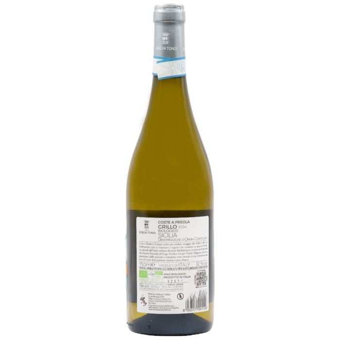 ღვინო Coste a Preola Grillo Gorghi Tondi 12% - 0.75ლ ბრენდი Gorghi Tondi წარმოშობა იტალია არომატი ციტრუსი, ჟასმინი, ზღვის მარილი გემო მინერალური, ცოცხალი, პიკანტური ტექნოლოგია დაძველება ფოლადის ავზებში ალკ. შემცველობა 12.00% მოცულობა 0.75 L 39.9₾ მარაგშია დამატება