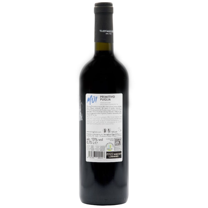 ღვინო Moi Primitivo Di Puglia Varvaglione 13.5% - 0.75ლ ბრენდი Varvaglione წარმოშობა იტალია არომატი წითელი ხილი, სანელებლები გემო რბილი, ხავერდოვანი, დაბალანსებული ტექნოლოგია დაძველება ფოლადის ავზებში ალკ. შემცველობა 13.50% მოცულობა 0.75 L 29.5₾ 19.9₾ მარაგშია დამატება