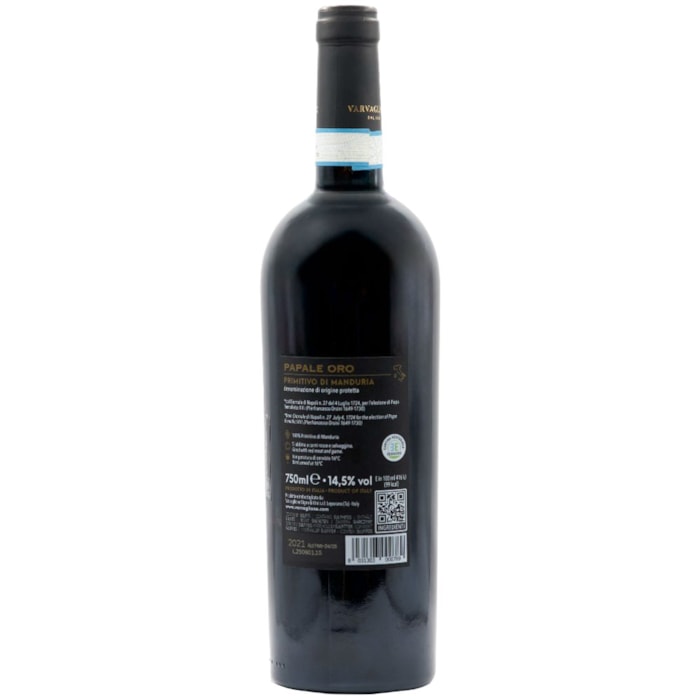 ღვინო Primitivo di Manduria Papale Oro Varvaglione 14.5% - 0.75ლ ბრენდი Varvaglione წარმოშობა იტალია არომატი კენკრა, შოკოლადი, ვანილი გემო მდიდრული, ხავერდოვანი, ინტენსიური ტექნოლოგია 10-თვიანი დაძველება მუხაში ალკ. შემცველობა 14.50% მოცულობა 0.75 L 99₾ მარაგშია დამატება