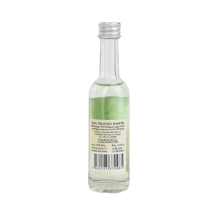 ჭაჭა მილდიანი ტარხუნა 52% - 0.05ლ ბრენდი მილდიანი წარმოშობა საქართველო არომატი ნედლი, ვეგეტატიური ტონები გემო ხავერდოვანი და ჰარმონიული ტექნოლოგია ორმაგი გამოხდის მეთოდი ალკ. შემცველობა 52% მოცულობა 0.05 L 6.5₾ მარაგშია დამატება